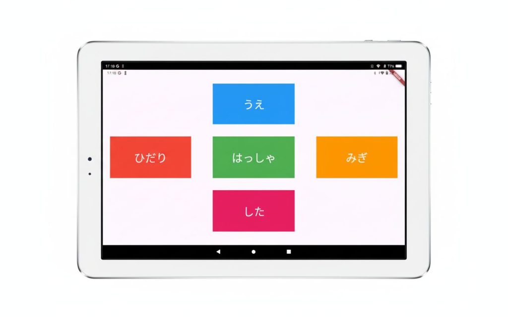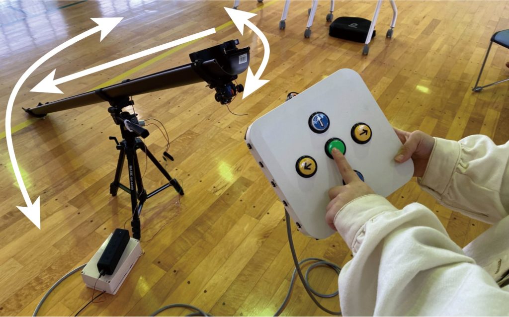 タブレット端末に表示されたボタンをタップすることで、ボッチャランプを左右に振ってジャックボールを狙ったり、ボールの発射をしたりすることができます。ローテクっぽいハイテクをアルテク(身近にあるテクノロジー)で実現します。